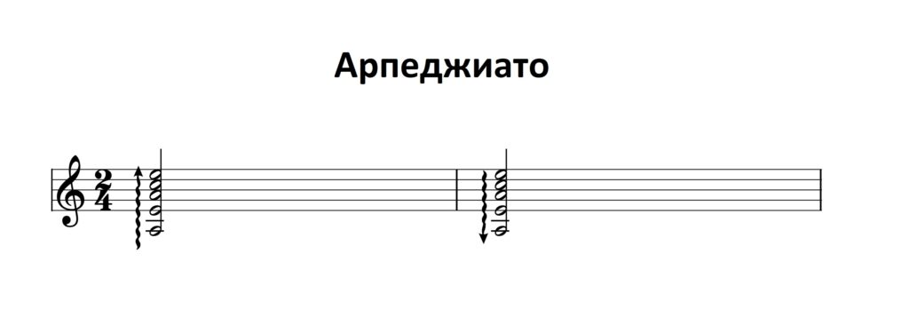 Быстрое последовательное исполнение звуков аккорда снизу вверх (иногда сверху вниз — если указан соответствующий знак).