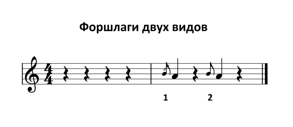 Форшлаг без перечёркивания хвостика представляет второй вид и исполняется за счёт длительности той ноты, к которой он относится ( см.Рис 1 пример 2).